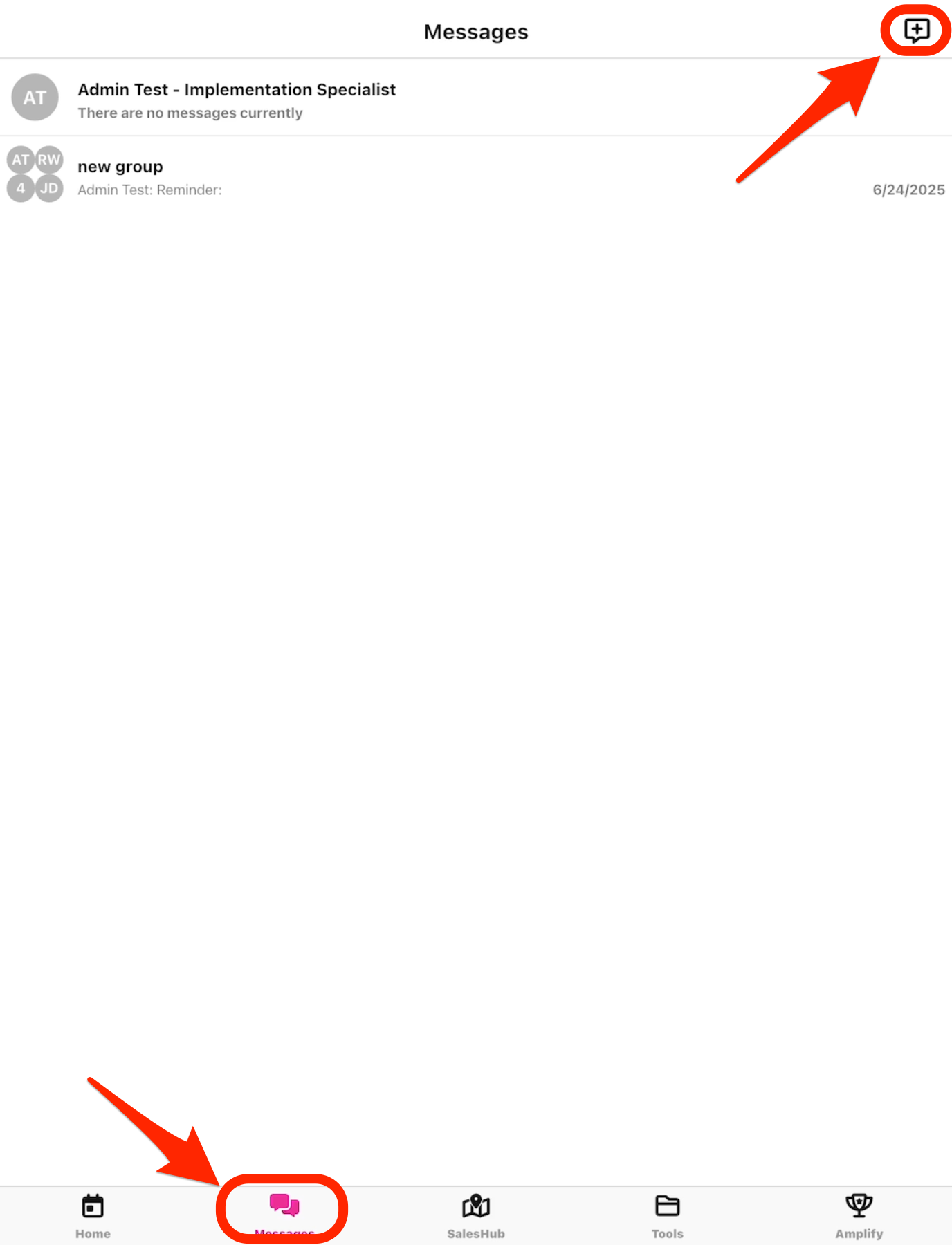 This part will briefly cover the different options available on the Messages Page of the SR+ Mobile App. Messages allow users to send a message to another rep or to a group of reps.