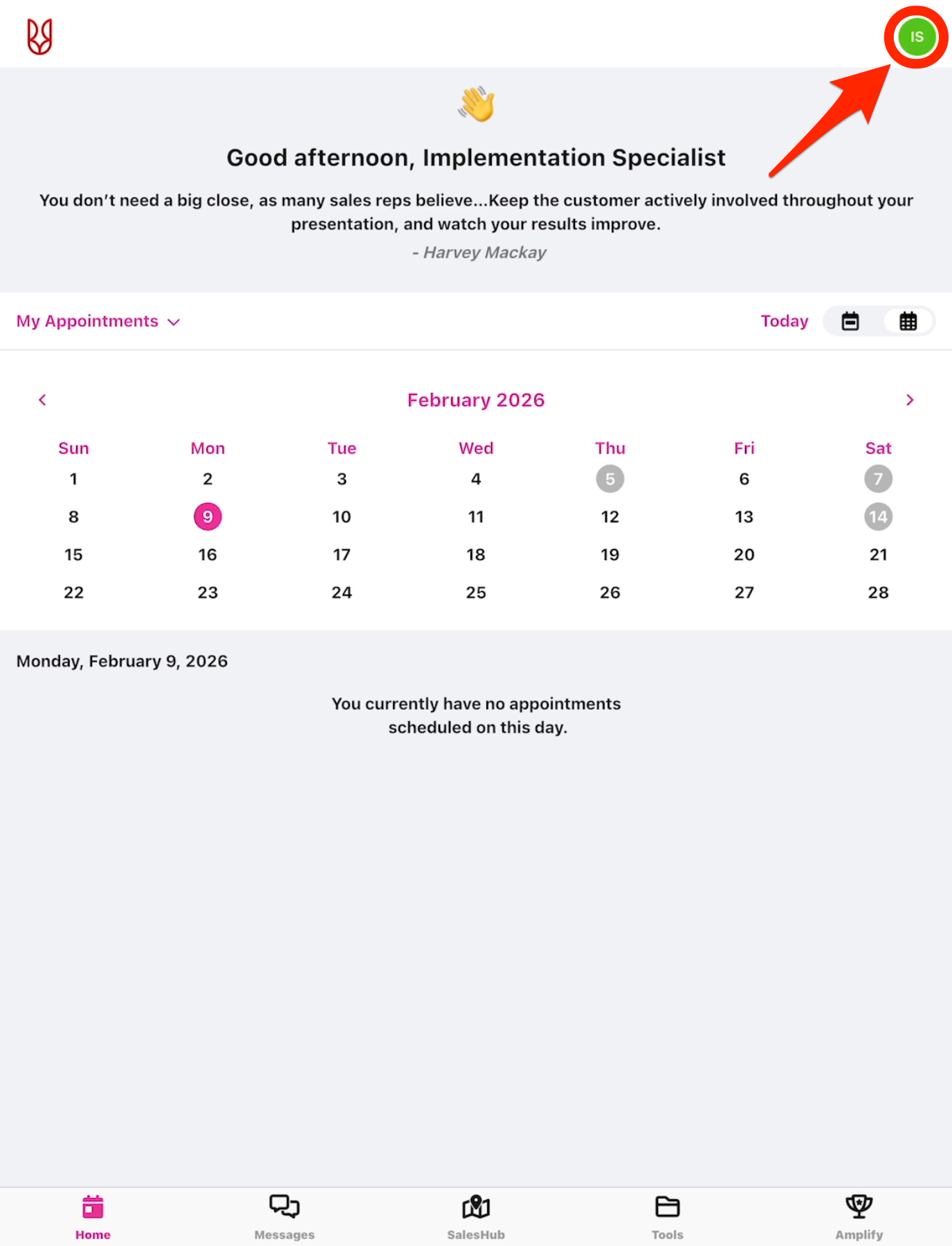 - The SalesHub is where users will spend most of their time in the mobile app.