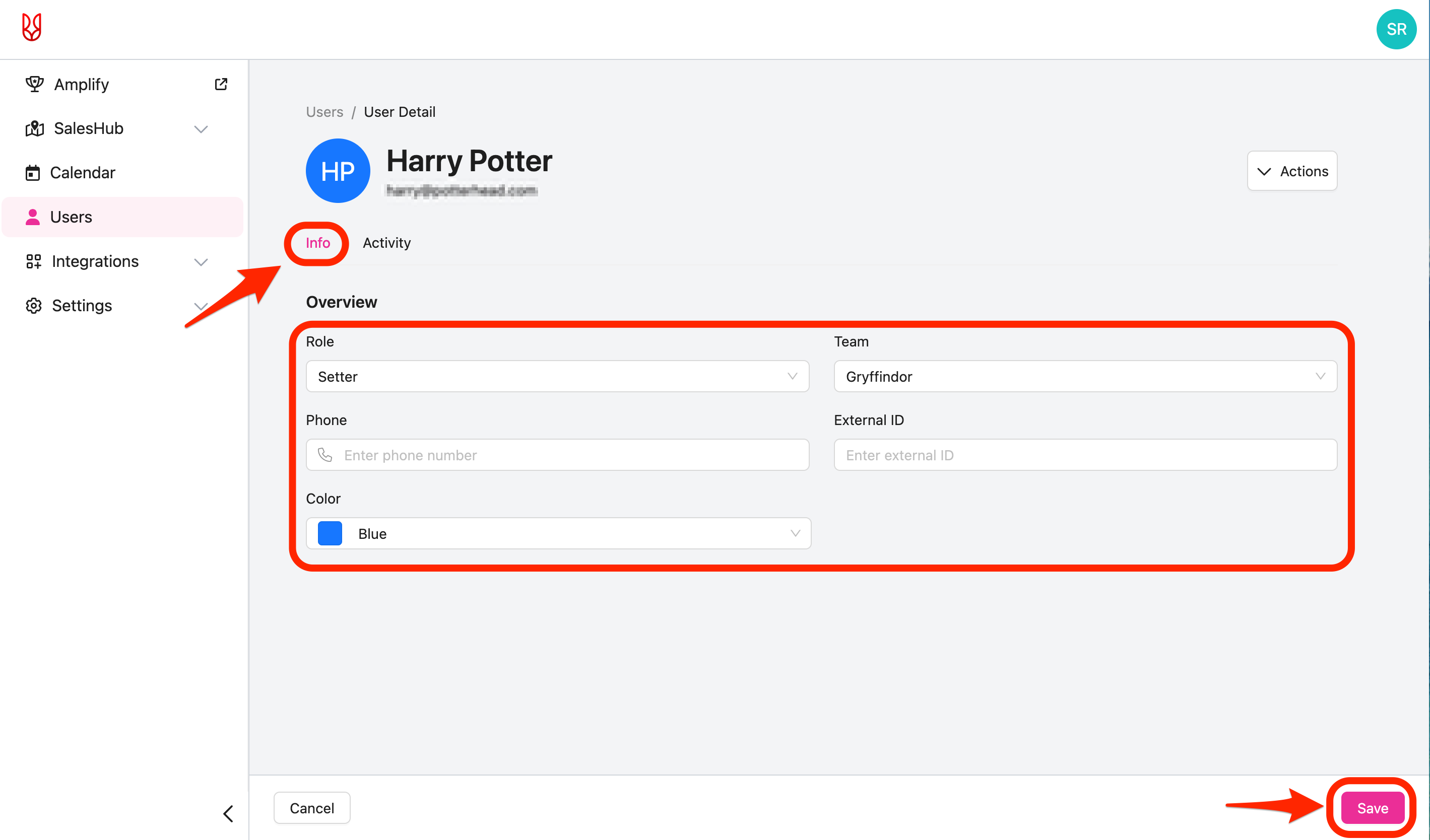 - Be sure to click "Save" to apply any changes made to the user.