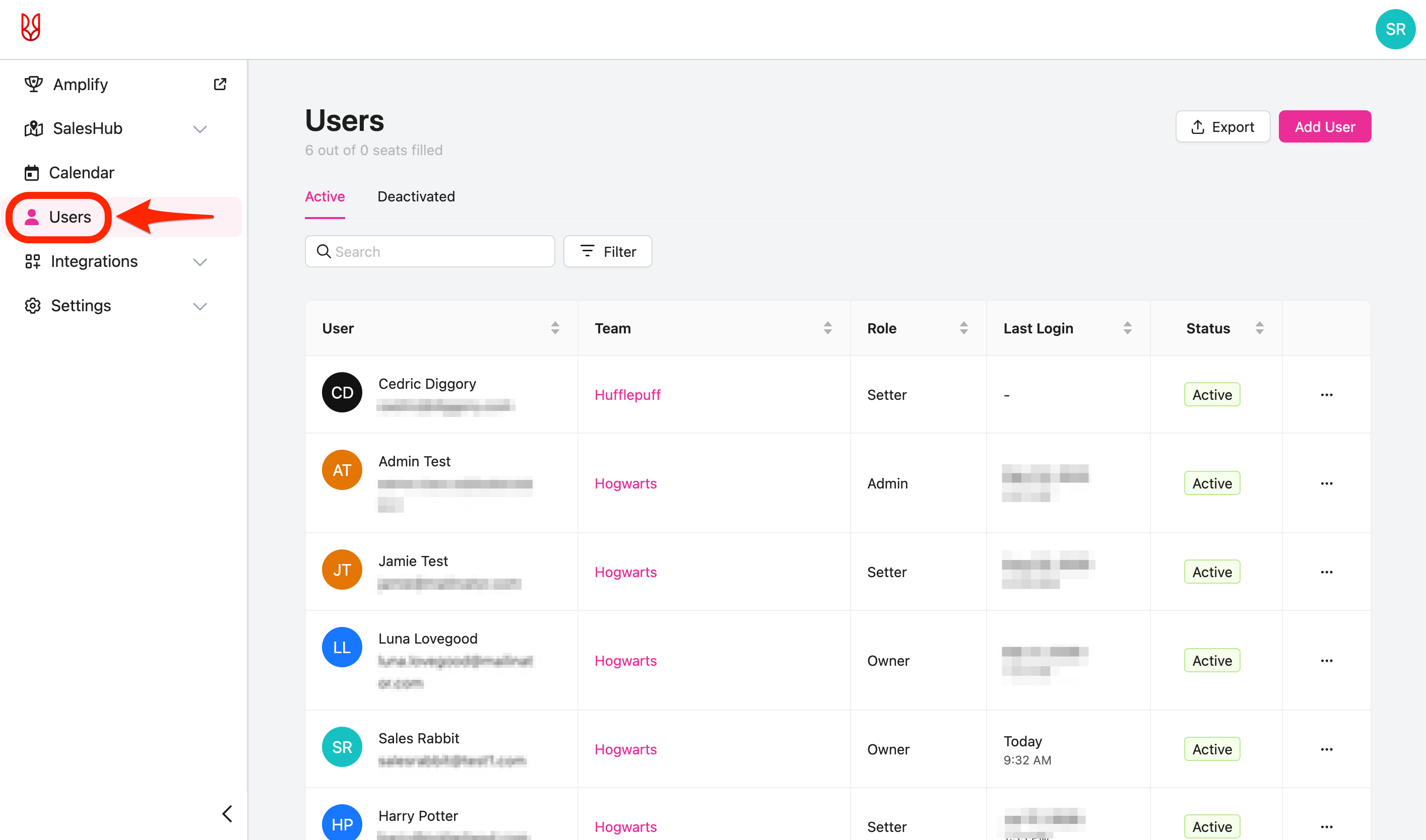 - From the SalesRabbit+ WebApp, navigate to the "Users" tab in the left menu.