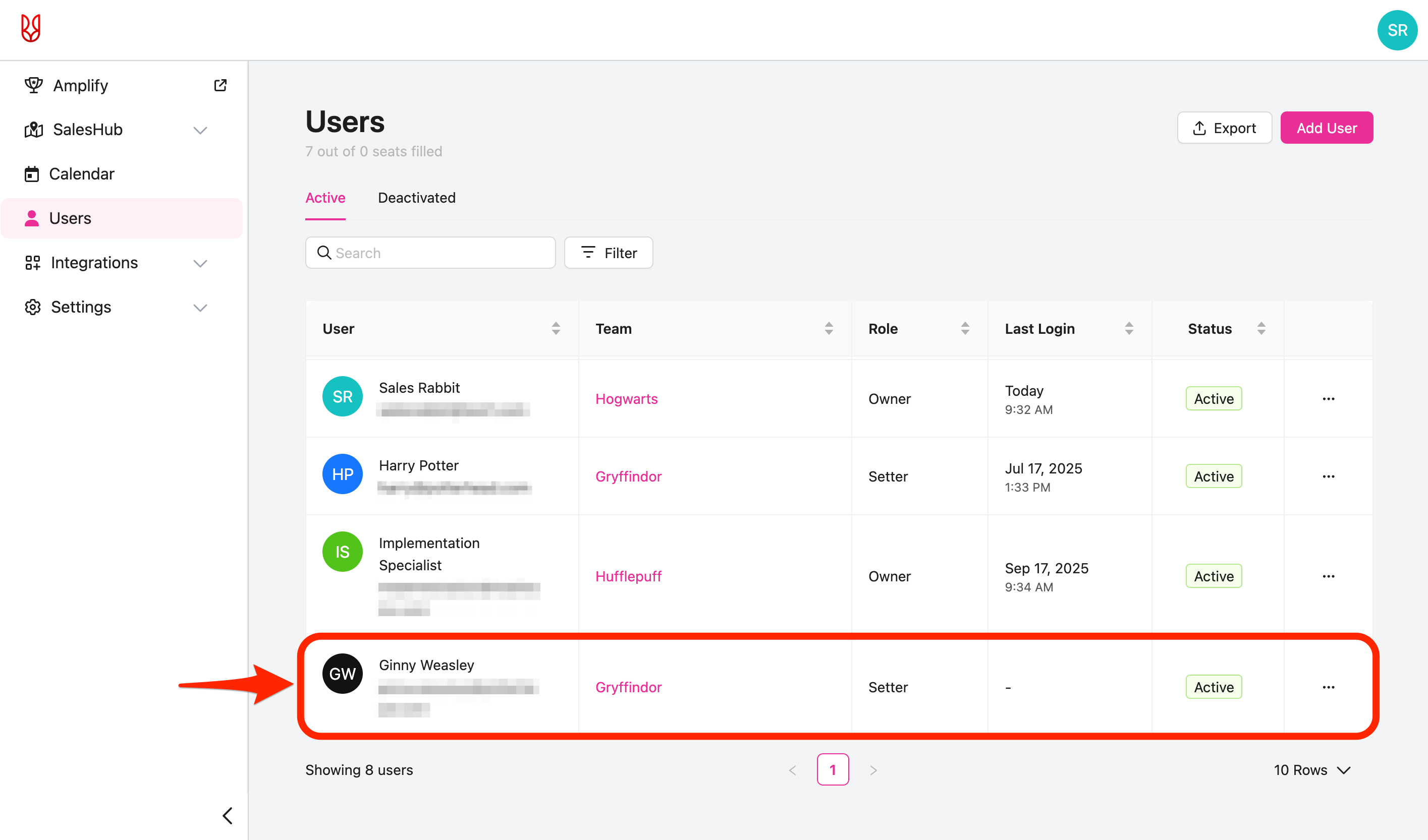 This article will cover how to navigate the user page on the SalesRabbit+ Web App. It also provides step-by-step instructions on how to add and deactivate users in your workspace.