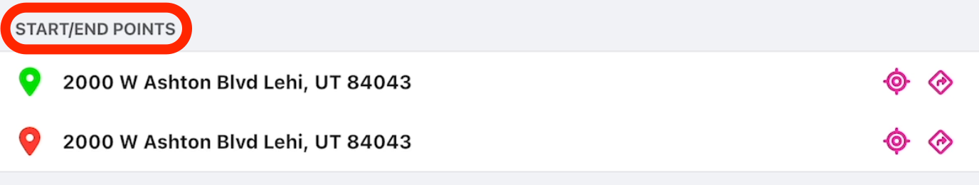 • Start/End Points: enter in the address of where you'd like this route to begin and the address of where you'd like to end.