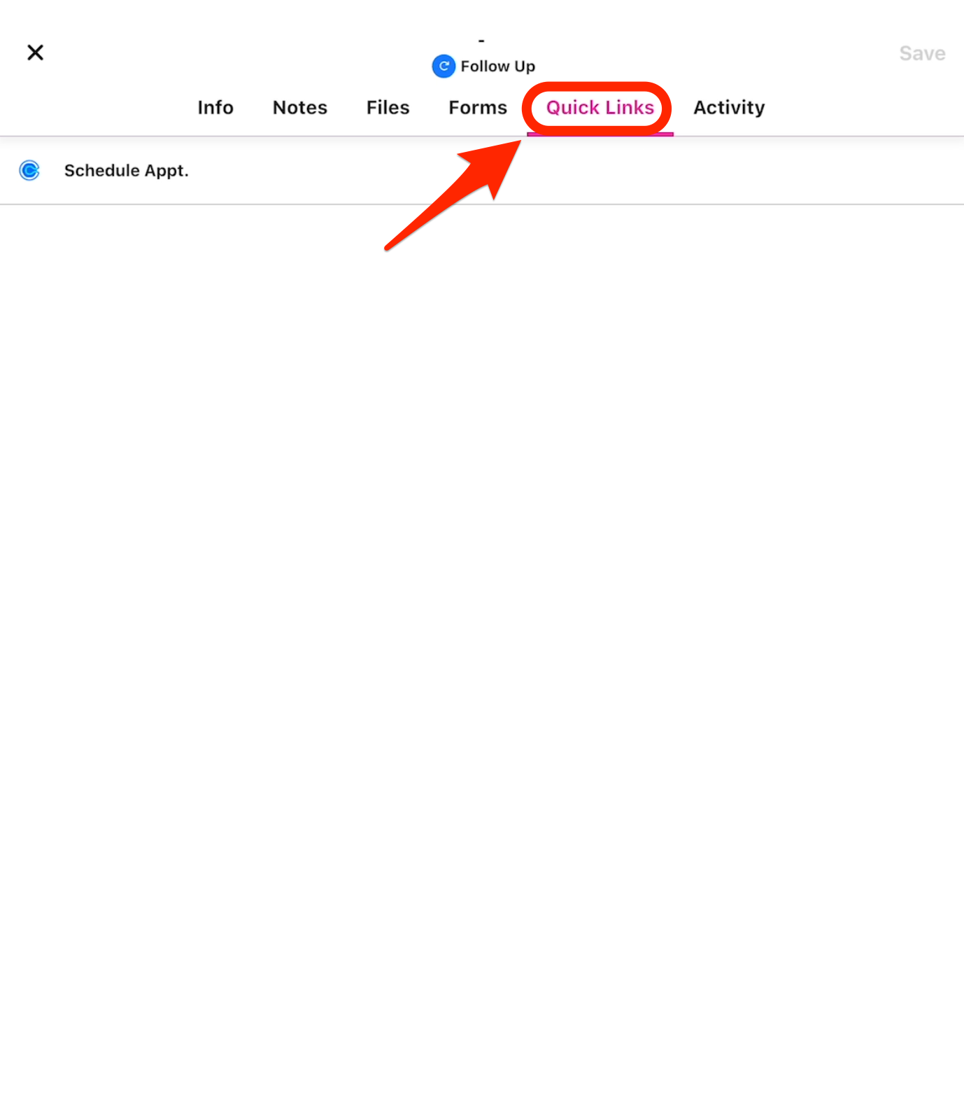 There are permissions associated with accessing and creating Quick Links can be used to create an access point for a simple URL or you can create a Quick Link with URL Parameters. Adding URL Parameters to a Quick Link will allow lead information to pass over to a form or booking page, preventing unnecessary double data entry.