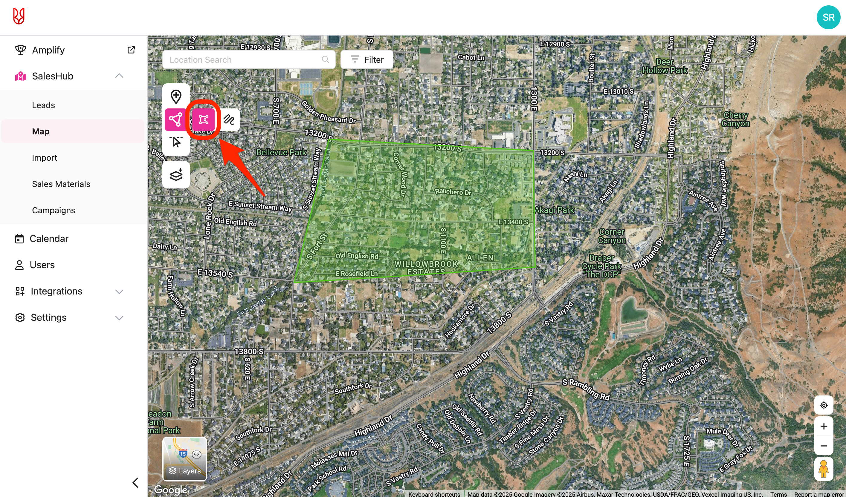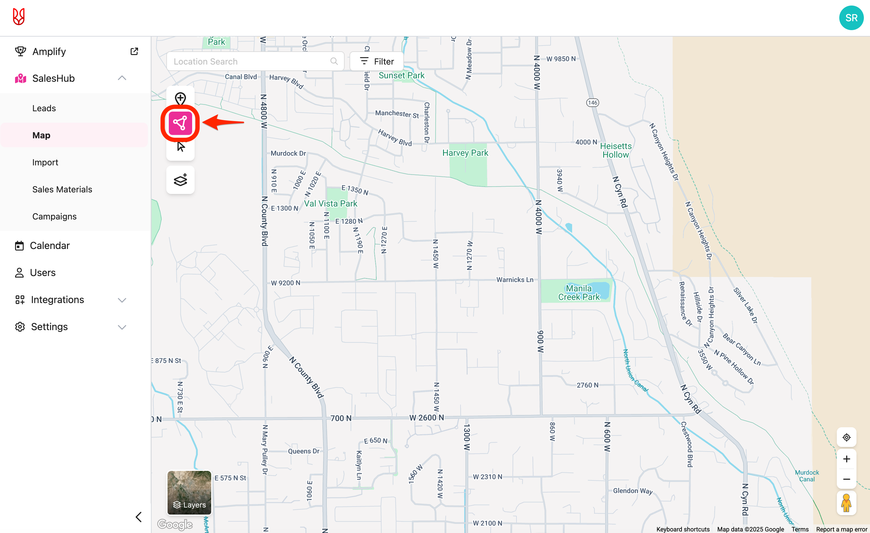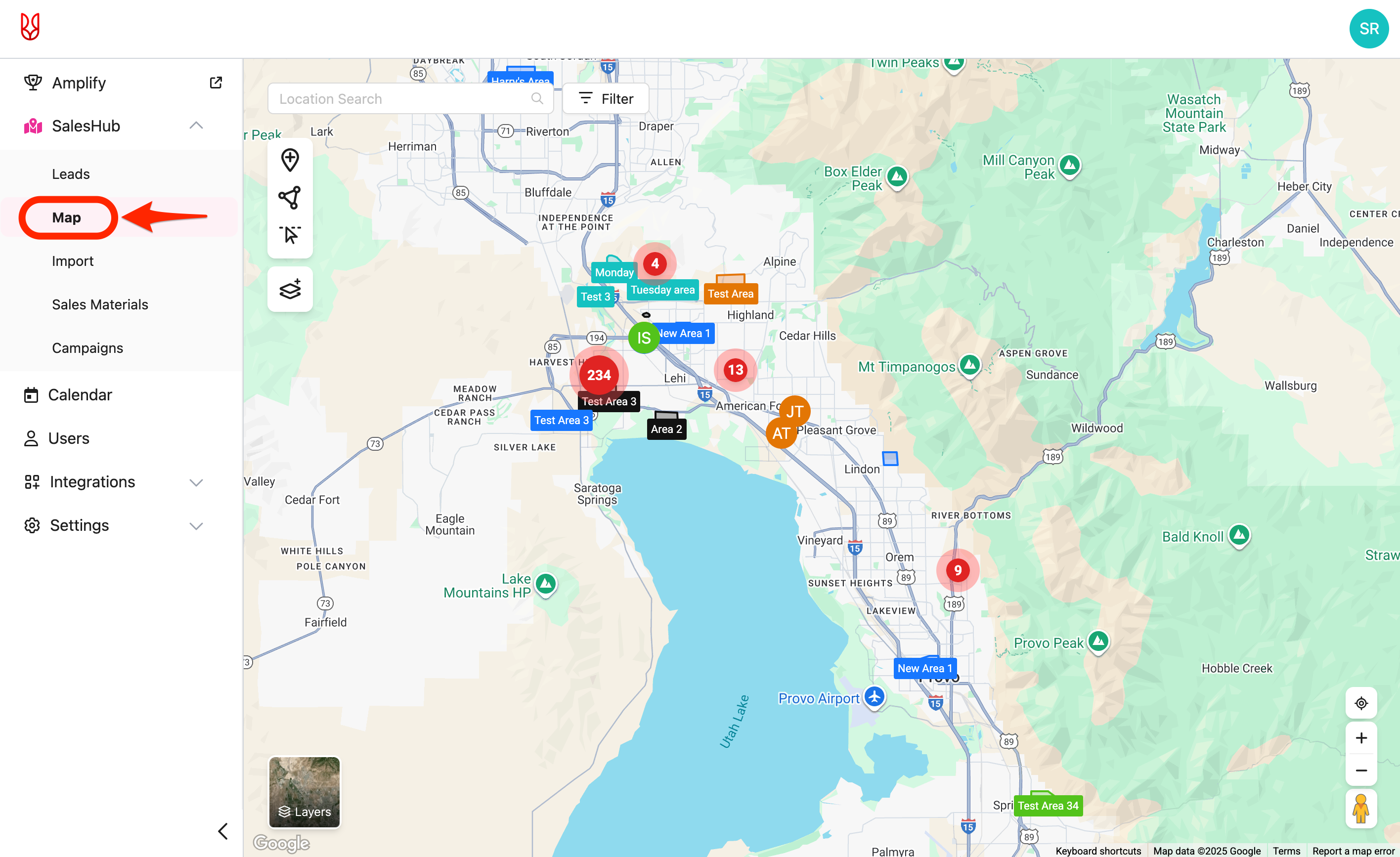• From the SalesRabbit Web App, navigate to "SalesHub" -> "Map".