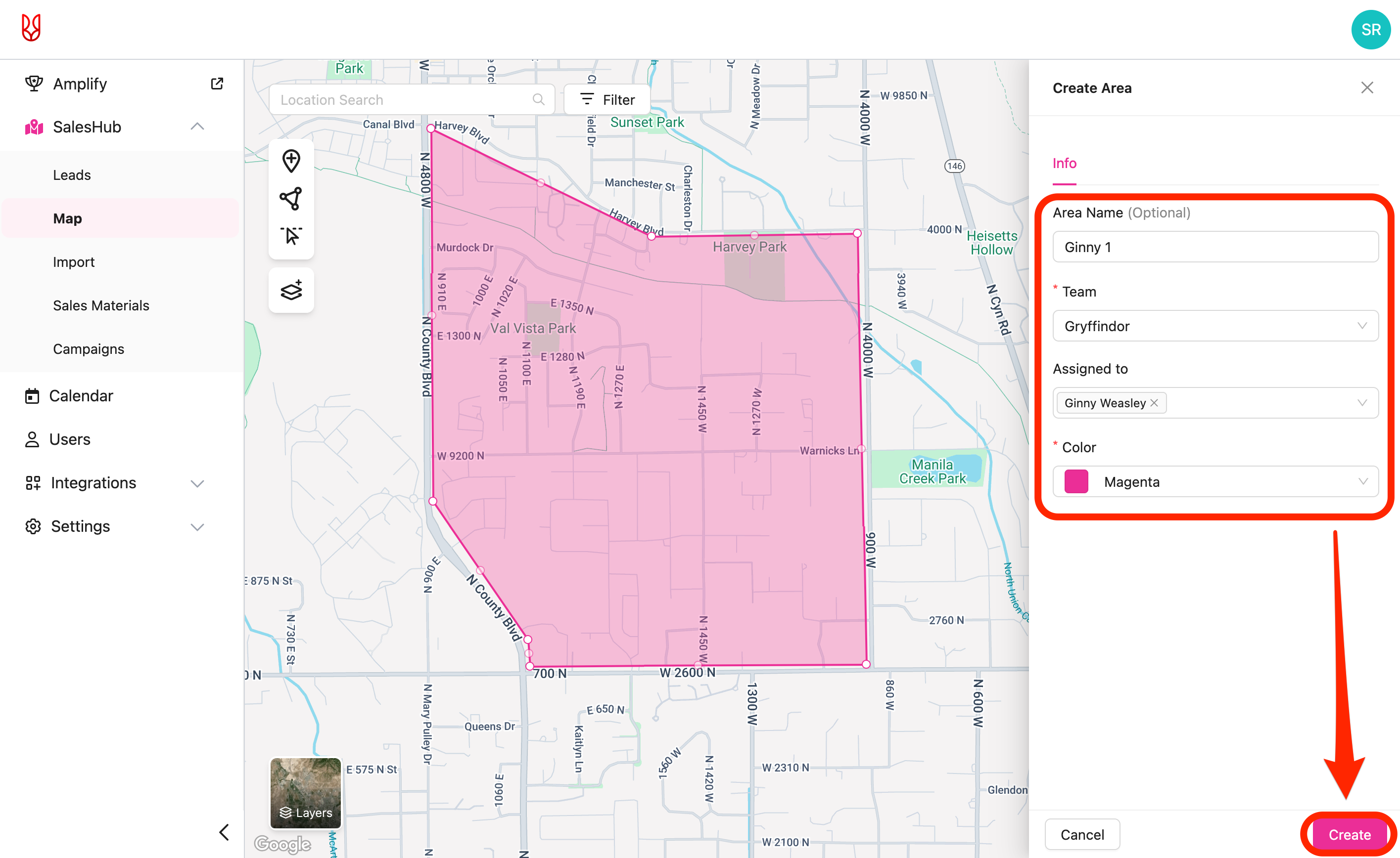 Note: areas can also be created from the SalesRabbit Mobile App.