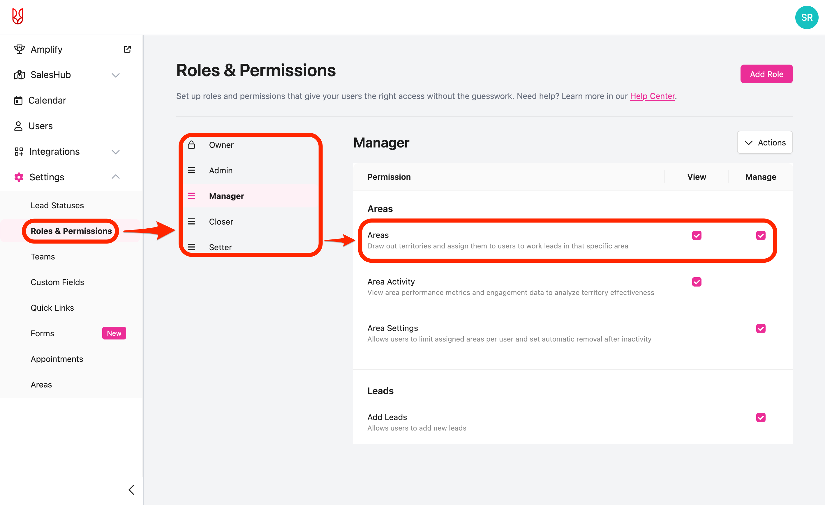 This part will cover how to manage your area settings in the SalesRabbit+ Web App.
