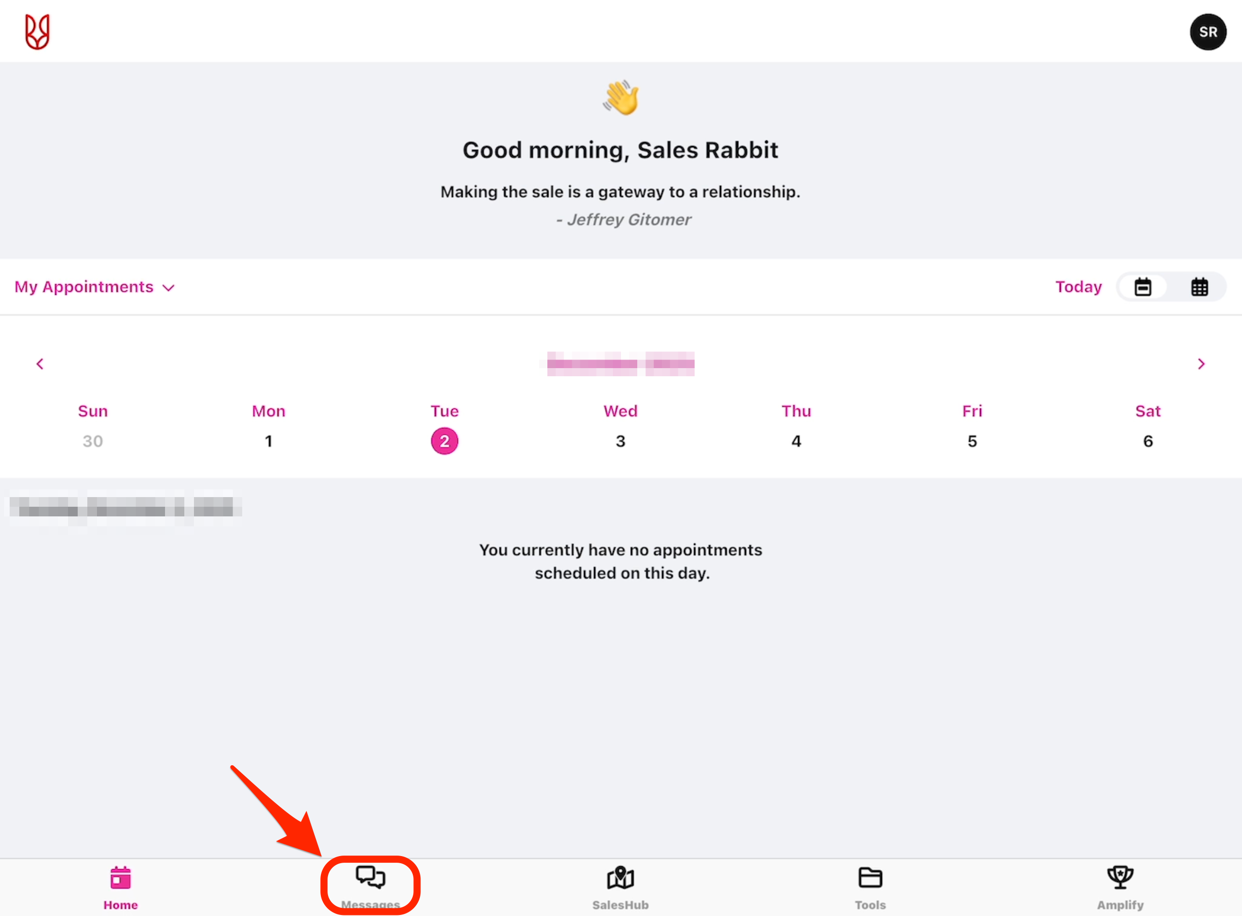 - From the SalesRabbit+ Mobile App, navigate to the "Messages" tab.