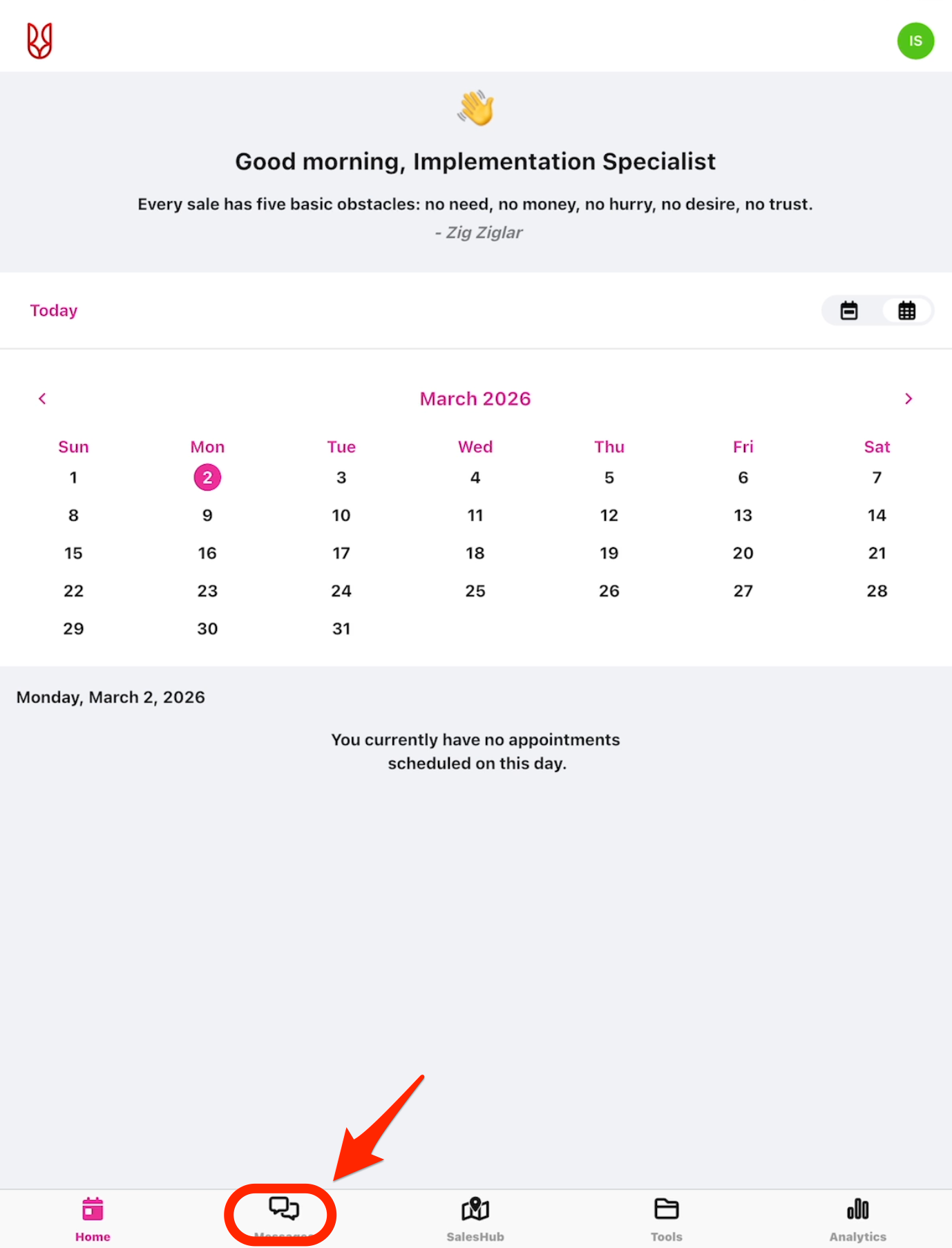• From the SalesRabbit+ Mobile App, navigate to the "Messages" tab.