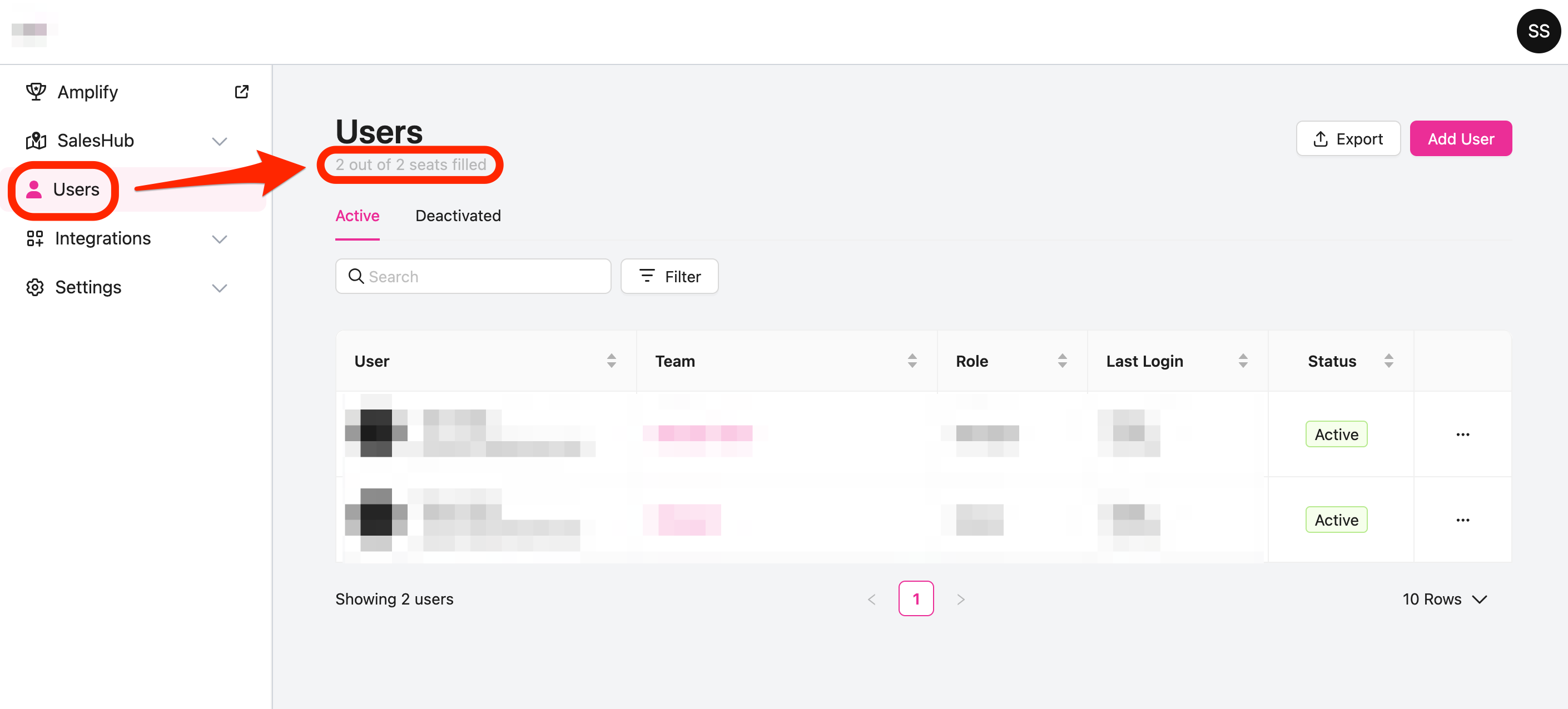 Upon sign up, the SalesRabbit Account Executive will help you determine a minimum number of user licenses for the workspace. Workspace Owners/Admins are then responsible to manage the number of users on the account based on how many active licenses you need. SalesRabbit bills for "active" user licenses at or above your user minimum.