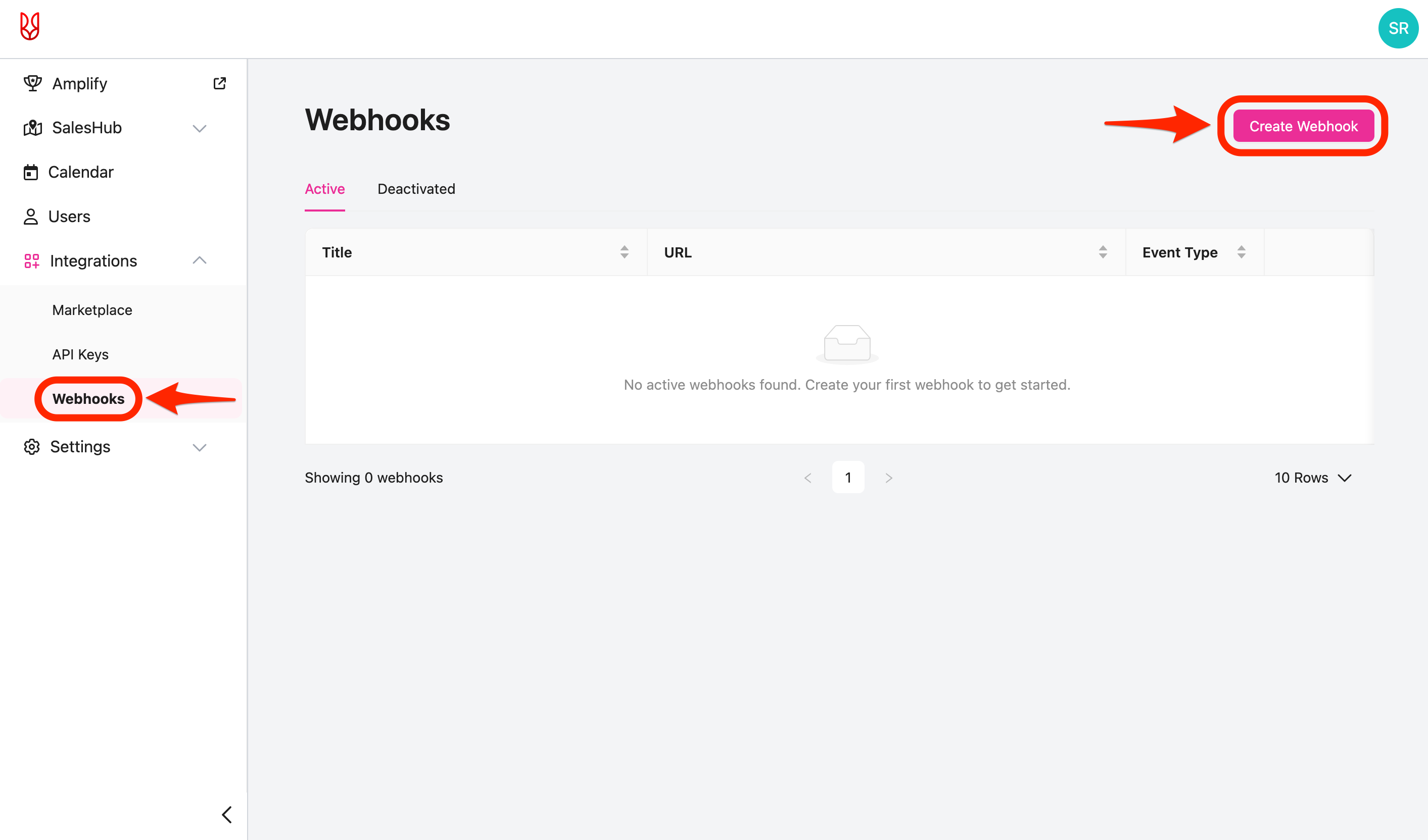 Note: Webhooks are only available to SalesRabbit+ Pro Plan accounts.